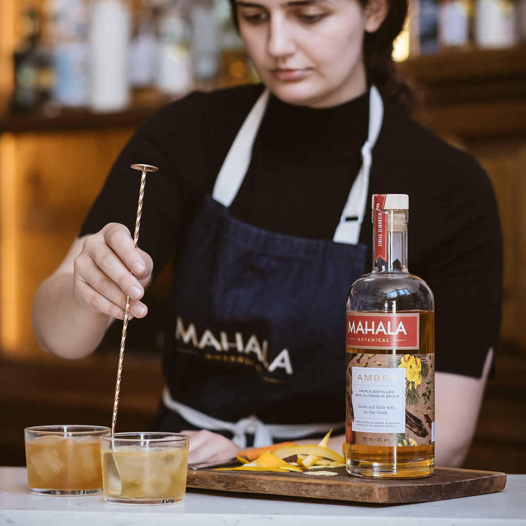 Put sugar, bitters & water in a small tumbler. Mix until sugars dissolved. Fill glass with ice & stir in Amber. Add a splash of soda water & mix. Garnish with orange.